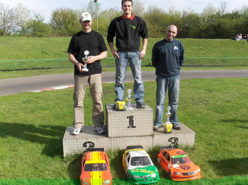 Die drei erstplatzierten in der Tourenwagenklasse. v.L.: O-Man, Markus Steiger, Claus Denzel