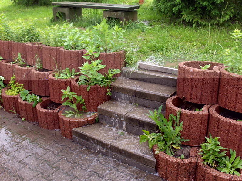 von der Oberen Wiese ersgiesst sich ein nicht enden wollender Schwall von Regenwasser über diese Treppe auf die Strecke.