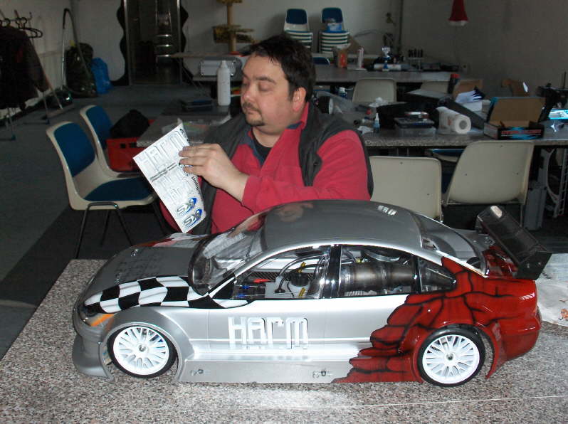 Die VW- Passat "Trainingskarosse" wird beklebt.